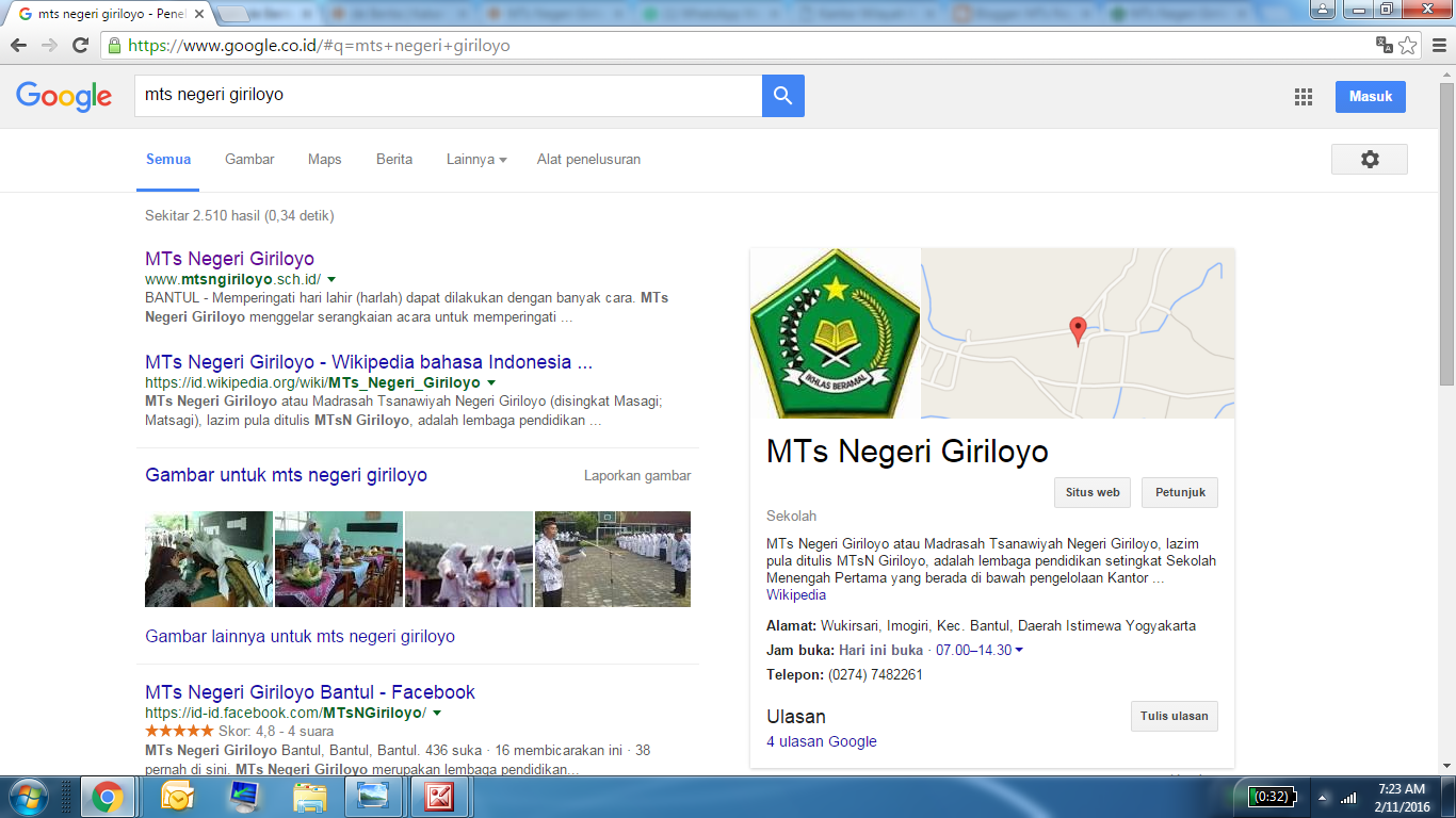 | Hasil pencarian dengan kata kunci "mts negeri giriloyo" di Google Bahasa Indonesia |